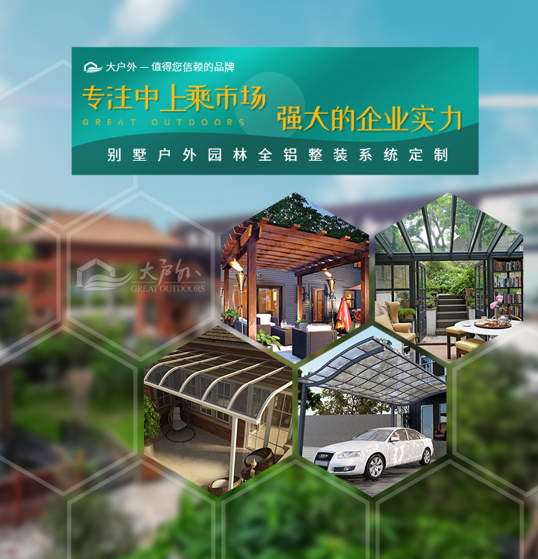 大戶外立足于”中國鋁都“佛山南海,專注別墅遮陽(雨)產品開發(fā),是南海地區(qū)鋁合金遮陽行業(yè)的知名品牌。
